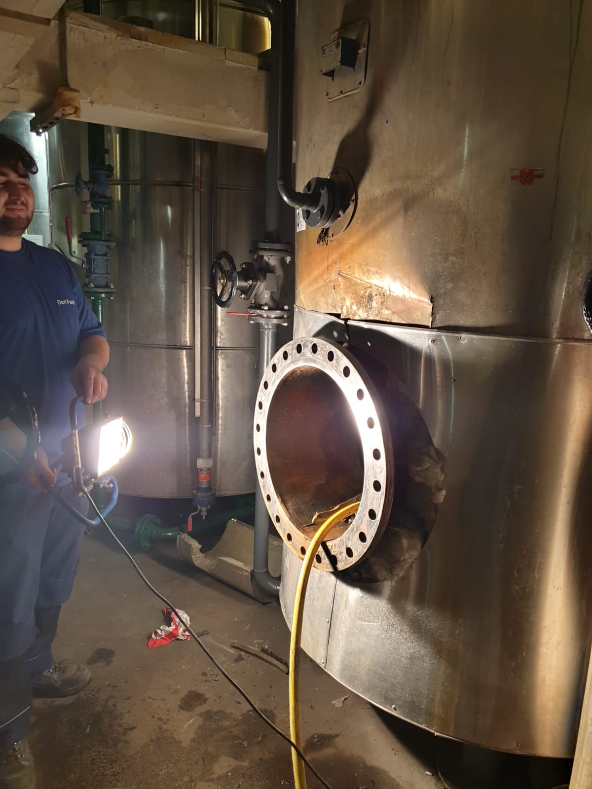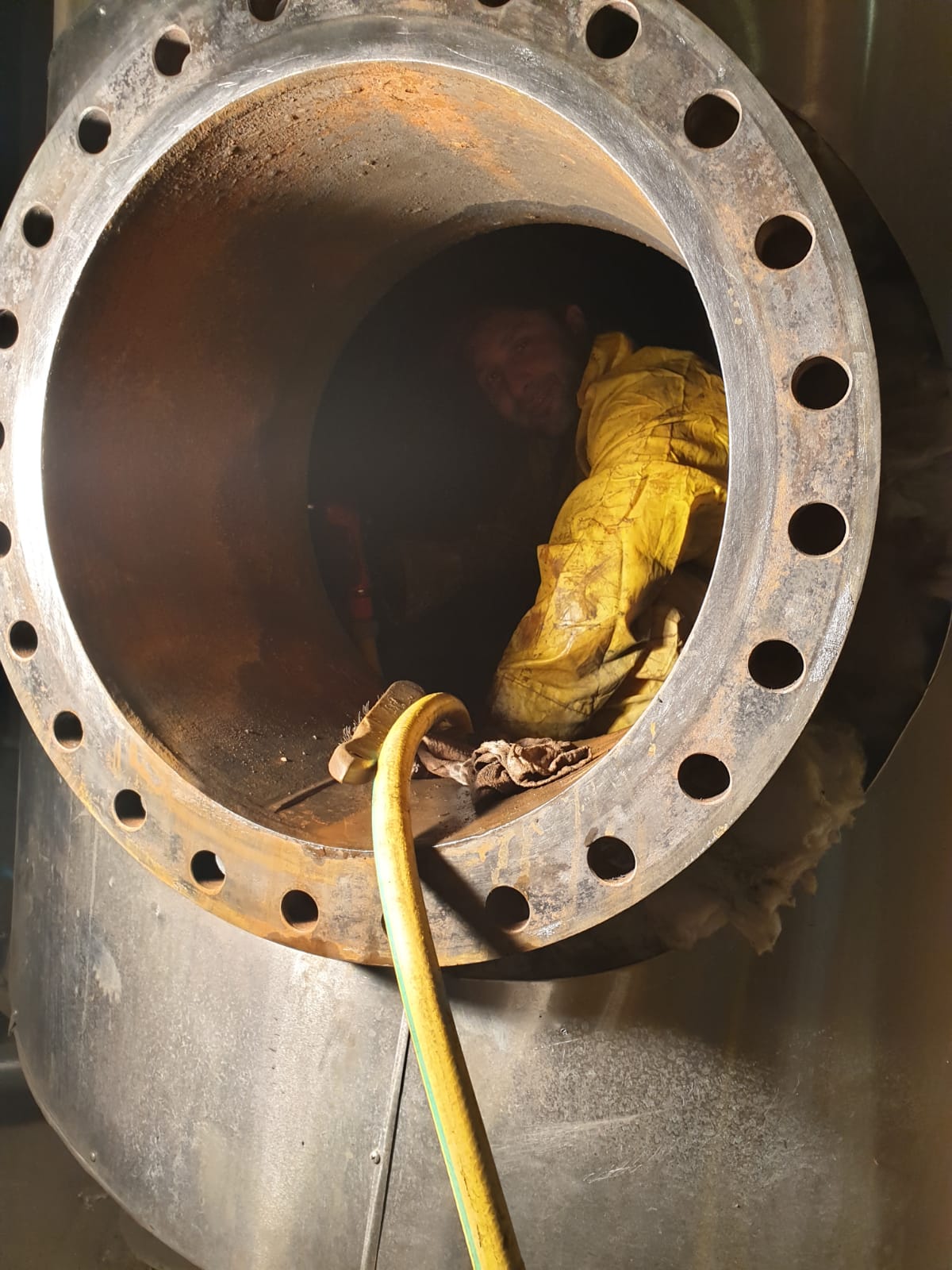 Unsere Kollegen Ceylan Fatih und Özyücel Mehmet bei der Reinigung von Pufferspeicher.